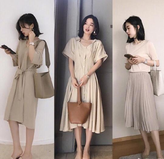 职场中,亮色的搭配虽然好看,但是如果搭配功力不够深厚,总觉得哪里不对劲,倒不如选择基础的色系,比如温柔的杏色、米色,一身纯色搭配,温柔大方,完全不用担心会出错,很适合职场新人,不扎眼,但很舒服。