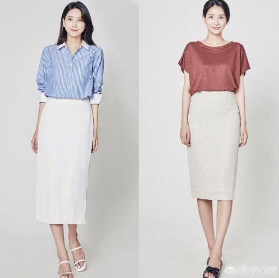 或者高腰的一步裙+衬衣,也是兼具干练与优雅的职场穿搭,一般颜色以纯色为主,或者运用一些流行元素,比如波点、条纹等,简单又高级。