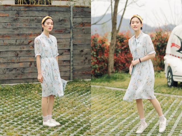 雪纺设计的连衣裙,能够勾勒出你曼妙的身姿,满满的女人魅力,衣领蝴蝶结的设计,又增加你造型的甜美感,腰身松紧的设计,不用考虑胖瘦的问题,把腰部的肉肉轻松收藏住,打造出美美的身材来,过膝的长度,非常适合腿粗的女生,裙身小清新的花朵,清新怡人,想想都觉得很美了,脚踏一双小白鞋,简单又好看,更不挑人。
