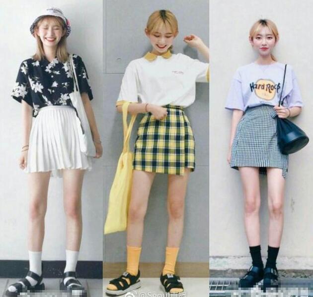 注意这里的凉鞋都是选择的平底中性风的凉鞋,鞋子对风格的影响很大,如果你选择一双高跟凉鞋,看起来就不是学生风而且轻熟女风了,在搭配袜子时,要注意袜子与鞋、包或者其他单品同色,这样才会更协调,整体感更强。