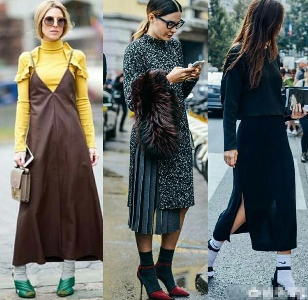 如果穿一双短袜在加上一个短裙,是不是很容易让你联想到学生,没错,其实袜子+短裙是一个非常减龄的搭配,如果你想看起来年轻,有活力,可以选择这种组合。