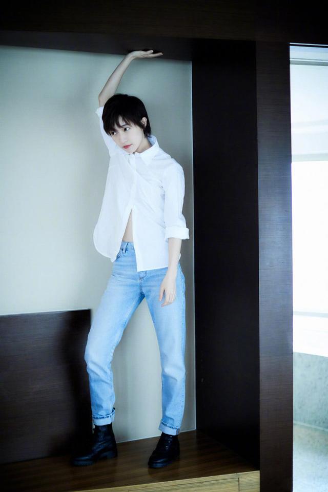今天要说的焦俊艳的这套穿搭,是最近一位摄影师给她拍摄的生活照。简单的白色长袖衬衫,搭配一条浅蓝色的宽松牛仔裤,这样随意的一穿就特别有味道。再搭配上焦俊艳标志性的超短发,简直就是假小子一个。生活中的焦俊艳,活得随性随心,不喜欢太多的束缚。简单清新的夏日穿搭,给人的感觉就特别的舒服。