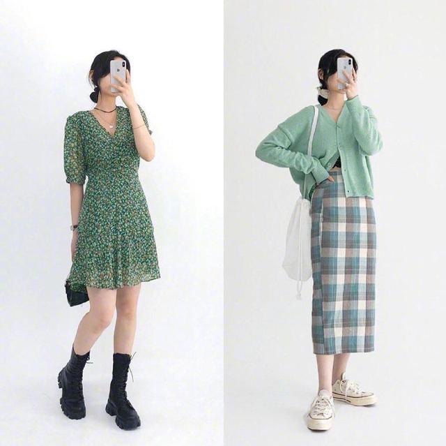 说到清新的穿搭,一定离不开绿色的单品搭配了,绿色的小碎花连衣裙不仅仅风格清新,更有一种温柔的气质。这个绿色比较的深沉,不像是那种明亮的绿色给人以强烈的视觉冲击。这种深绿色看起来很有意蕴,就像是把人置身在奥秘的大森林之中。