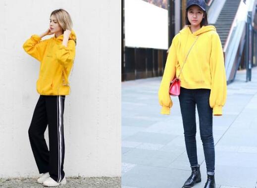 在绿色的基础上,不妨再添点黄色激励自己上进,萧瑟寒冬中的一抹“暖阳”,的确能让自己的心情瞬间愉悦起来。一款明黄色卫衣搭配黑色长裤,热情浓烈的黄色搭配黑色正好中和了强烈的视觉冲击力,使得整体look更加和谐。