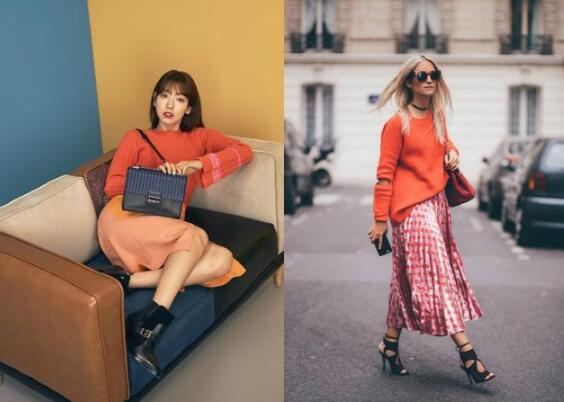 除了需要土黄色的稳重,还得加上橙色的警醒,以告诫自己,这个世界上,可没有后悔药卖哦~对于入门级选手来说,橙色搭配确实没那么容易上手,不如从简单做起,选一款橙色毛衣,宽衣袖、不对称的结构设计,一定会让造型时髦起来。