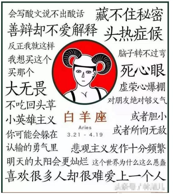 白羊座的妹纸热情如火而且为人慷慨,可惜缺点就是脾气暴躁,做事容易冲动,水逆期间,白羊座的妹纸如果恰逢考试、外出旅行、出差或是之前有拖延下来的事项需要解决,可能在这段时间内很难有进展,Miss林温馨提示,除了尽量储存能量之外,千万不要与人挑起事端,否则一失足成千古恨,招人记恨就得不偿失了。