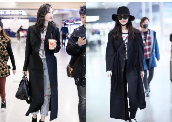 北方的妹纸还可以像高圆圆这样用灰色毛线帽来进行简易混搭,完全hold住了寒冷天气,好看度爆表。