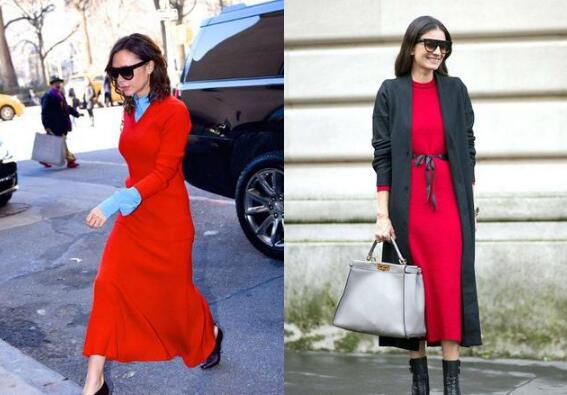 当然这天寒地冻的也少不了红色针织裙,带给每个女生自信与典雅,更能衬托好气色,穿上红裙,就似一朵含苞待放的玫瑰,充满风情。
