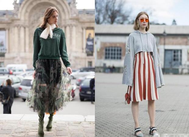 中长款半身裙在时尚圈的地位一直举足轻重,更是粗腿星人的福音。身材高挑的模特和时尚博主们有足够的身材优势,任性地接在中长款半身裙外面套一件卫衣,穿一双平底鞋,而普通身高的人还是乖乖选择短款卫衣或将卫衣塞进裙子里,重新划分上下身比例;对于身高没有优势的人,厚底鞋或高跟鞋都可以在视觉上起到显高的作用。