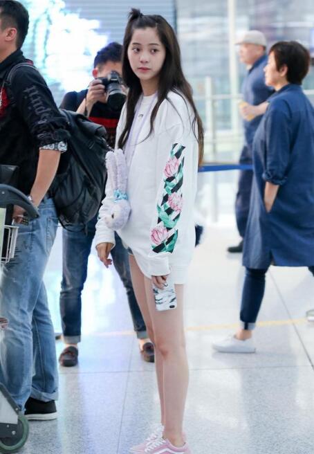 欧阳娜娜,当然她和丰满型身材毫无关系,而且也不是梨形身材,但我想说的是她们这套搭配,没错,近几年非常流行的“下衣失踪”,一般梨形身材的人大腿都不算太粗,所以利用扬长避短的方法来搭配。