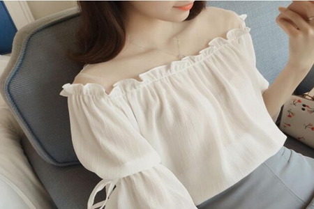 荷叶边元素在夏日里是极其流行的,它能够为整体增添一份柔美以及优雅的气息,但是当它点缀在胸前处,会使胸部的范围得以扩大,胸大的妹子穿上就更加显丰满了,很壮实且难看哦,丝毫没有气质可言。那我们就可以选择款式比较简约的上衣,像一字领上衣或者是斜肩上衣,不仅可以达到转移视线的效果,而且还能露出性感的肩部线条,来遮掩住你胸大的事实哦。