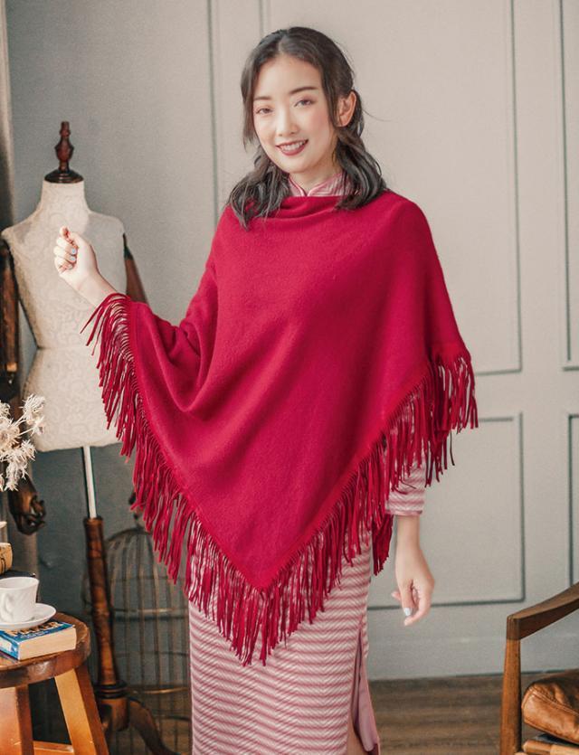 微凉的秋天,针织的旗袍和丝绒的旗袍温暖又深情,还可以搭配披肩或者针织开衫,都各具风情与韵味,粉色的条纹甜美又温柔,娇俏的少女味十足,旗袍优美的线条中和了横条纹带来的膨胀感,搭配一件红色毛呢的披肩,优雅端庄,还能在坐下的时候遮挡住腿部,温暖又实用。