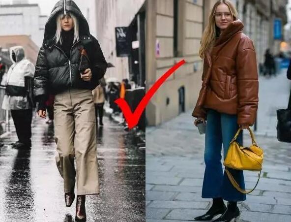 如果你穿着像羽绒服这样的夹克,你应该穿宽腿裤,但你必须选择一条短裤来搭配阔腿裤,而腿部不宜过宽,这会让你的身材看起来像像平板电脑,我没有看。你可以在左边的女孩身上学习,搭配短款羽绒服,再搭配高腰阔腿裤,彰显瘦腰,还可以学习正确的长款羽绒服妹妹,配上较少的宽松宽腿裤,效果还不错!阔腿裤穿什么外套好看?