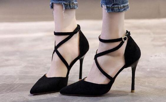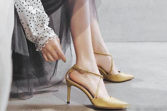 尖尖的高跟鞋一直是时尚潮流,如果你觉得跟脚的话,可以选择加入一字带,这个一直都是很火的元素,一条细带,就能让你的腿又长又细,无敌显瘦,细腻极简主义特别有魅力,完美的峰顶风格,突显出女性气质和优雅的身材。