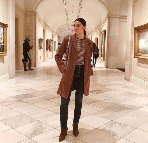 咖啡色搭配深灰色则显得更加成熟稳重一点,例如是咖啡色大衣+深灰色毛衣+深色牛仔裤,搭配黑色及裸靴,妥妥的精致时尚girl。