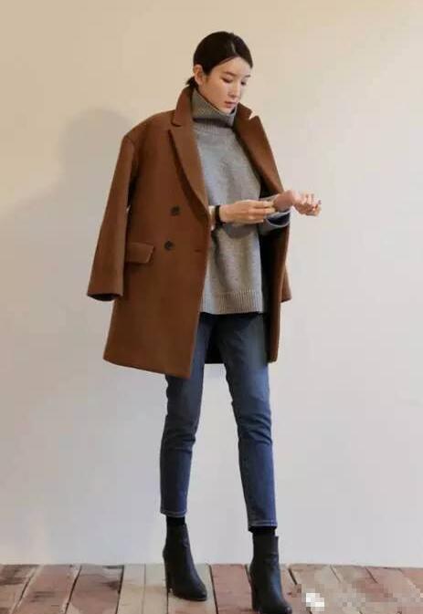灰色高级百搭,跟咖啡色搭配在一起,完全不用担心会出错,比如咖啡色大衣+浅灰色高领毛衣+深色修身牛仔裤,配上一双过膝长靴,尽显高挑好身材。