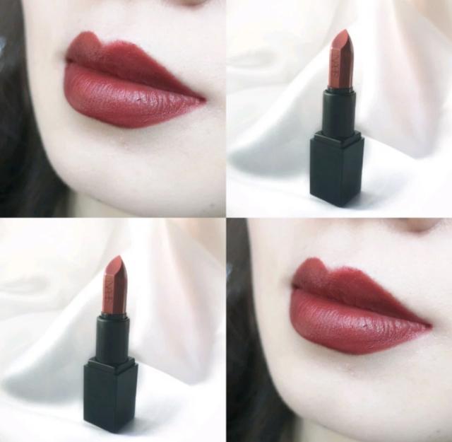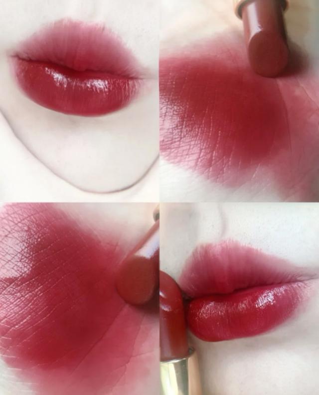 口红颜色是超正红棕色,红调和棕调都恰到好处的结合,十分显气质,既不会老气沉闷又不会过于亮眼艳丽,包装设计很有质感,颜色很适合秋冬季节。哑光的质地,相对来说会有点点干,所以在上唇的时候要注意做好唇部打底,薄涂是红豆沙色,颜色比较日常。而厚涂则是妥妥的红棕色,超级显白,平常搭配毛衣大衣都非常适合。