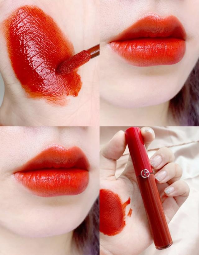 阿玛尼家的经典色号,妥妥的烂番茄色,简直是一个超级百搭显白的颜色。自从上新以后一直都是非常的火,深受广大女性喜爱,虽然是丝绒哑光的质地,但是并不会感觉特别干,上唇成膜很快,光泽感很强,色泽浓郁,而且非常显高级,薄涂很元气,厚涂则超显气质,据说80%的女生都拥有这支口红。