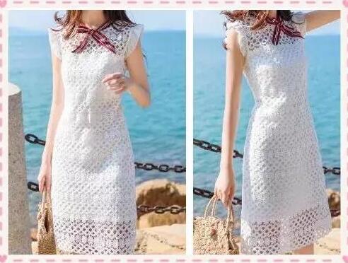 夏季最仙的蕾丝连衣裙——镂空蕾丝连衣裙,圆领系带设计,呈现出不一样的美感,裙摆雪纺设计,修身自如极具女人味,为女士衣着锦上天花,领口的蝴蝶结系带设计,时尚又显气质,而且散发了女人自信的气味。