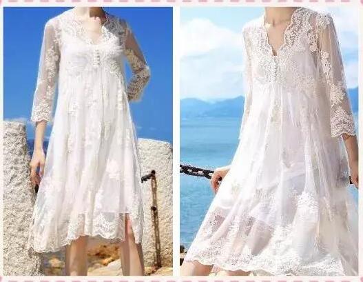 宽松的板型,更好的藏肉,完美的遮住肚子的小赘肉,今年流行的蕾丝连衣裙款式七分袖的刺绣元素,是当季的潮流元素,里衬是一条小吊带裙,百搭又时尚,整体给人的感觉就是,端庄又优雅。