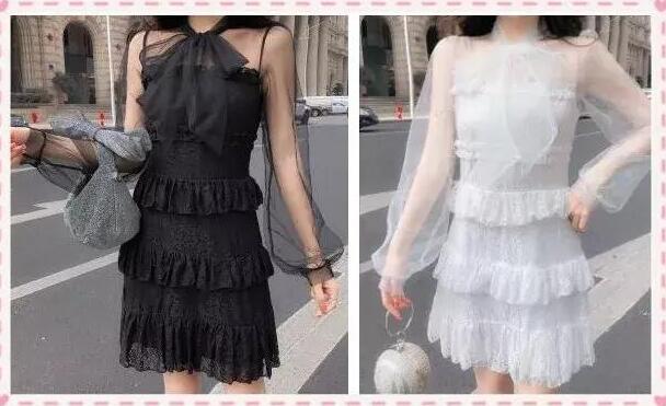 夏季最受欢迎同时最流行的时尚单品,就是这款——透明蕾丝连衣裙,薄纱透明设计的衣袖,时尚又性感,蕾丝百褶裙摆设计,非常修身显瘦,黑色高贵显瘦,极具诱惑力,白色透明蕾丝连衣裙,淑女又优雅,尽显名媛气质。