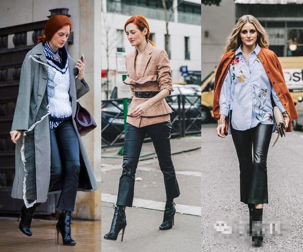 ▲曾经的皮裤也是风靡一时,如今结合喇叭款的皮裤,再创历史新高,皮革喇叭裤的话,小编建议大家可以选择九分的长度,搭配一双简单短靴,既能做到温度与风度兼具,同时也大大拉长了腿部线条,拥有一双完美的大长腿根本不是梦。
