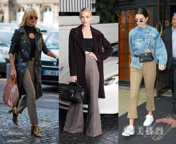 ▲格纹元素是2018 时装周之后大火的元素,从格纹西装到格纹大衣,都是非常受欢迎的热门单品,格纹裤装穿起来也是很起范儿的,尤其是格纹元素遇见喇叭裤,两个复古风的结合,更显优雅与时髦气息。