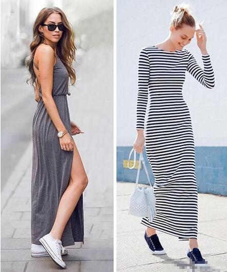连衣裙+运动鞋:或许早几年的时候,连衣裙+运动鞋的组合还时怪异的,甚至是不伦不类的,但是这两年连衣裙与运动鞋的组合已经成为了一种新的时尚。不同风格的单品搭配在一起,不会有矛盾的不和谐,相反会有一种意外的混搭时髦感。尤其是对于那些不喜欢穿高跟鞋的女生来说,连衣裙搭配运动鞋让你穿着更加舒适,时尚度却丝毫未减。