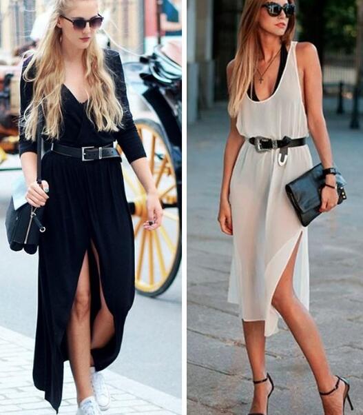 腰带:如果在长裙上加一条腰带,可以让你的腰部更加突出,自然的秀出纤细的腰部。如果你不喜欢系腰带,也通过裙子上的剪裁来达到同样的效果,这也会突出你的大长腿。
