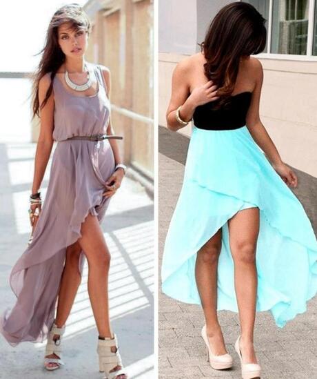 如果你想秀出美腿,并且想穿长裙,那么不对称连衣裙是不错的选择。前短后长的设计会让你的身材修饰的更加美丽。
