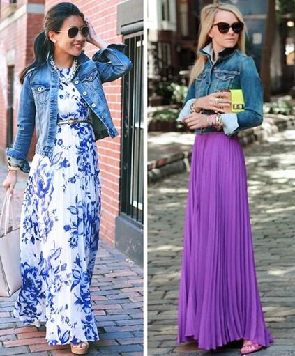 连衣裙+夹克:说一下这种搭配的优势吧。无论你的连衣裙有多少颜色与图案,设计多么夸张,一款牛仔夹克都可以让它变得休闲接地气,百搭的颜色可以与各种颜色搭配起来,而且有减龄的效果,最为重要的是,与短款夹克搭配,上短下长,会在视觉上延长腿部,显腿长。