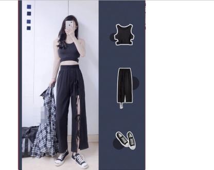 酷酷的运动女孩搭配,超级有个性,完全是一条腿精女孩“心机裤”。镂空的运动小背心很显身材,虽然是短款,但是一点都不会给人暴露的感觉。裤子就是最惊喜的部分了,不仅舒适度极佳,而且外观和款式都超级特别,单边的高开叉和绑带的设计可以说是很少见了,里面是还有一层贴身的短裤设计,所以不用担心走光,系上的绑带也完美的避开了坐下时整个裤腿会垂下去的尴尬,带上一件格子小衬衫,可以防晒也可以保暖,从哪一个角度都要给满分的一套。