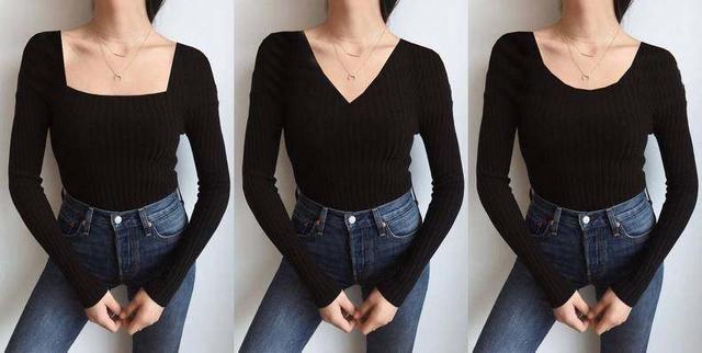 还有就是一些姑娘并不胖,但是脸比较圆或者带有一点婴儿肥,这类脸型其实比较影响美感,但是也可以通过V领搭配的,v领将脖子衬托的修长优雅,锁骨微露,搭配屋,也在视觉上拉长了脸部曲线,使下巴显得更尖,脸型更偏瓜子脸一些,性感撩人还有气质,整个人的气场都不一样了,显瘦还有时尚感。