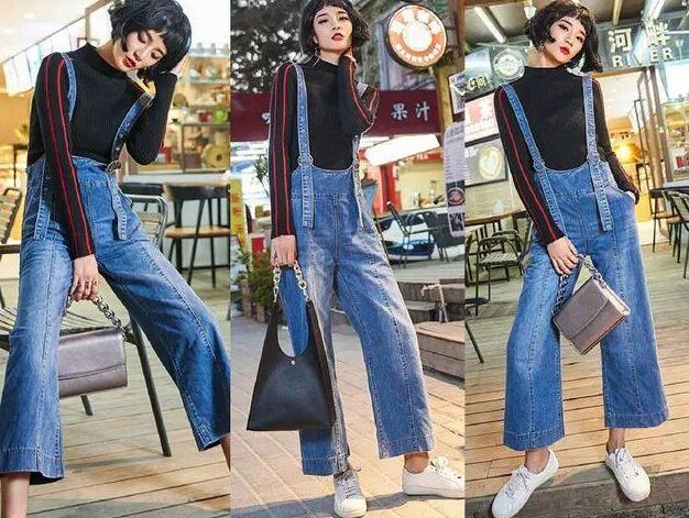 一条很好看的2019年春季牛仔阔腿裤,还是背带的设计,可以巧遮你的粗腿曲线,还有拉长腿型的效果,显瘦显高的效果超级好。女装搭配,