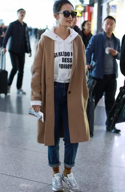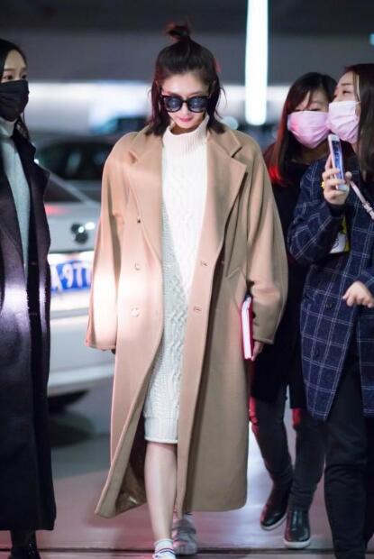 冬季潮品驼色大衣,搭上白色毛衣裙,也非常好看,散发满满的优雅气质。get黑色墨镜,可以给小仙女增添些许酷感。