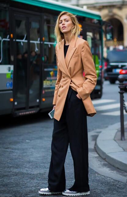 要说驼色和什么颜色的搭配好看,小编觉得黑色就不错。这款冬季潮品驼色大衣,设计得十分修身。它的收腰设计,凸显了小仙女纤细的腰肢。下半身pick黑色裤子,这样搭配,彰显着优雅的气质。脚踩平底鞋,它的白色平底使全身look瞬间有了亮点。