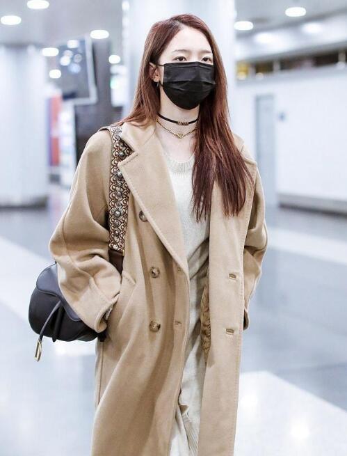 这款驼色的大衣的扣子,十分吸睛。在整体look中点缀的恰到好处。选择黑色的包包,这样搭配,丰富了整体的颜色,打破了单调感。