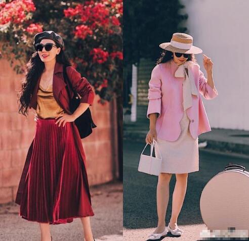 高级的搭配不一定非得黑白灰,亮色系的搭配也能穿出时髦高级感,比如酒红色的金丝绒外套内搭金色内搭,下装搭配酒红色金丝绒百褶裙,贝雷帽配上卷发,优雅复古,满满的法式风情。