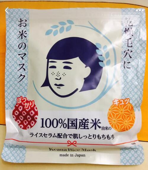 1,日本大米面膜,是近期最火的一款日本面膜了,时常到断货的地步,是日本Cosme石泽研究所的大米面膜,这款面膜是真的从大米的成分中提取有益于皮肤的精华,这款是为干燥肌量身定制,而且有很好的收缩毛孔的功效,但是里面应该有酒精的成分,毕竟一般收缩毛孔的都有酒精,所以敏感肌慎用啊。