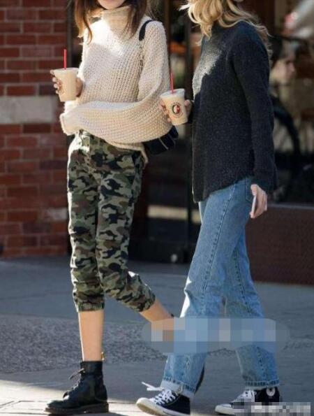 像右边女孩穿着的宽松肥大没型的工装裤,两边口袋又大又低,粗旷的大头靴完全遮蔽身形,男性化特征太盛,休闲裤搭配什么衣服好看飒爽英姿有余但性感妩媚全无,不是工装裤赋予女生的魅力造型所在。▼