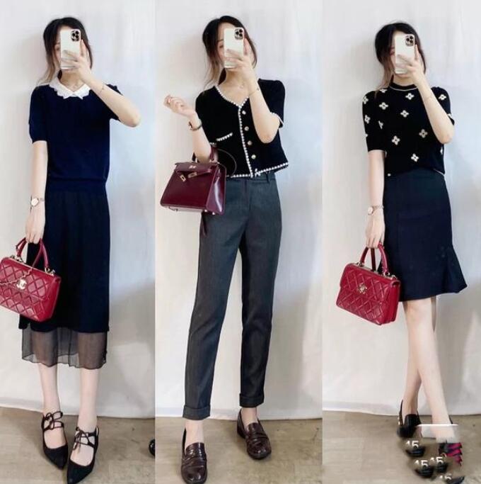 秋天里,针织衫也是不可或缺的时尚元素。针织衫有着更加柔和的气质,穿起来非常的甜美大方。不管是开衫的造型,还是修身的元素,都可以打造出更加浪漫迷人的气质。如果想要显高的话,秋天通勤衣服搭配图片自然可以搭配一些露脐的上衣,或者将针织衫塞进裤子或者裙子里,呈现出更加高挑的腰线,用以拉伸视觉比例。