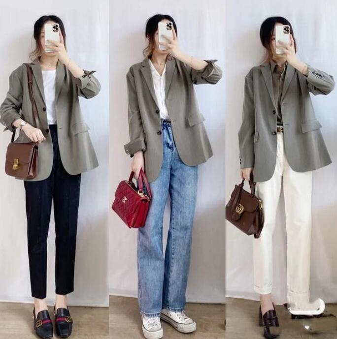 随着天气的转凉,如果早晚需要外出的话,还是需要加一件外套的。如果说有什么外套是百搭又时髦的,那么一定是非西服外套莫属了。当然休闲风的西服外套,并不一样都要选择黑白色。经典的卡其色,或者优雅军绿色,以及柔和的米白色都是非常不错的搭配。西服外套可以搭配锥形裤,自然可以搭配直筒裤,都是同样的时髦大方。