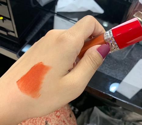 大家很多人都对迪奥的口红,还停留在999、888这些经典的色号上,其实迪奥还有很多冷门一点的好看颜色,这款秋季的新款红管口红的颜色是网红的烂番茄色,质地是很滋润的。