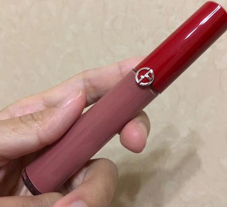 阿玛尼的这款红管唇釉的质地是丝绒哑光的,很多人都知道丝绒哑光的质地是比较上档次的,质地也是相比比较滋润的,它是比较高端的一种质地,这款口红的颜色是属于蜜桃奶茶色,真的是一款巨温柔的颜色,不管是单涂或者是用来打底叠加其他深色的口红都是很不错的。