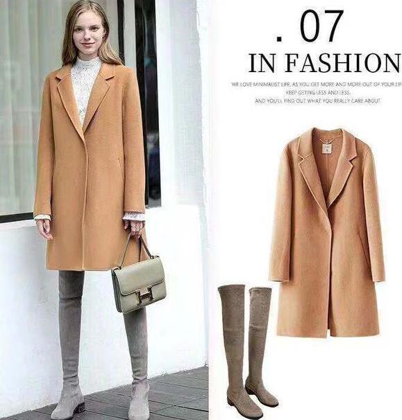 很多服装现在都走简约的风格,越简单越耐看,而且极简风格也是受到现代年轻人的喜爱。浅驼色的大衣在风格上就是极简,没有多余的点缀,版型修身显瘦,搭配上灰色的高筒长靴是低调而且优雅的,整套的颜色都很舒服协调,却能透露出一种高级感。