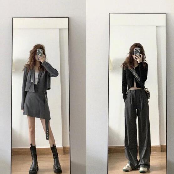 所谓上短加下长的穿搭方式,无疑会让女生的腰线看起来更加高挑,穿起来有一种更加时髦显高的效果。对于大多数女人来讲,都想要显得双腿更加修长。这时候高腰裤就是最好的选择,如果双腿更加纤细的话,自然可以选择高腰的短裤。但如果腿型也需要修饰的话,高腰的长裤才是最完美的搭配。所以像这种短外套加长裤的穿搭,穿起来总是更加高挑又时髦。