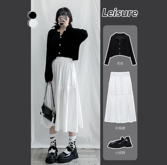 黑色的短款毛衣,更加优雅沉稳。而且这种浓郁的黑色系,也是比较显瘦的。即便是有些稍微宽松慵懒的版型,穿起来也格外的时髦大方。搭配了白色高腰长裙,极简的配色更显得优雅利落,搭配一双奶牛袜,更是时尚甜美。这样的穿搭,显高的同时也非常提气场。