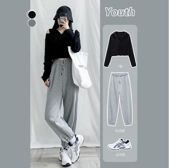 露脐款的上衣,更加甜美个性。黑色系的造型,有一种更加精致利落的美感。露脐的设计,性感而大方。小个子怎么穿衣服显高?搭配了一条灰色束脚裤,完美的修饰腿型,高腰的设计也是非常显高的。束脚的设计,更加利落大方。搭配一双运动鞋,更显得个性甜美。