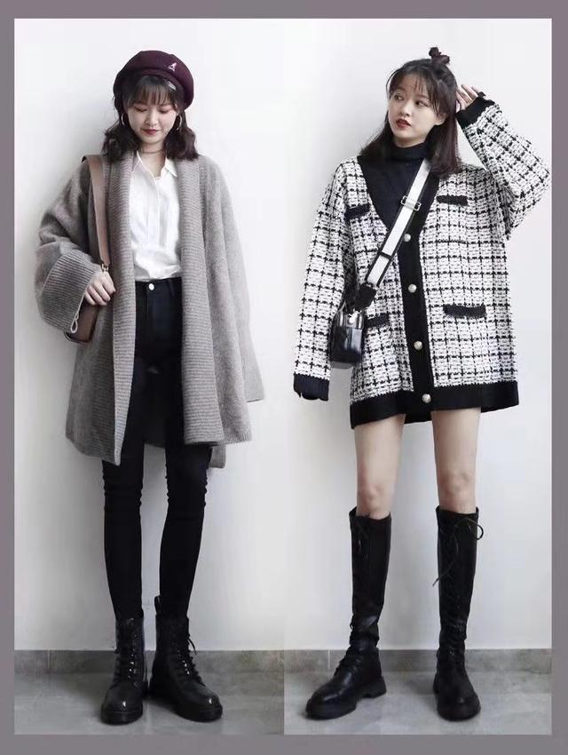 长筒的靴子更适合穿短裤搭配针织开衫毛衣,不仅将自己显得青春靓丽,而且还十分温柔、性感,高高的靴子使得双腿更加的修长,也更加有魅力。而马丁靴则更适合搭配紧身裤和针织开衫毛衣,修身的裤子在马丁靴的衬托下,其美化双腿腿型的作用十分突出,这一身装扮尽显个人温柔本色。