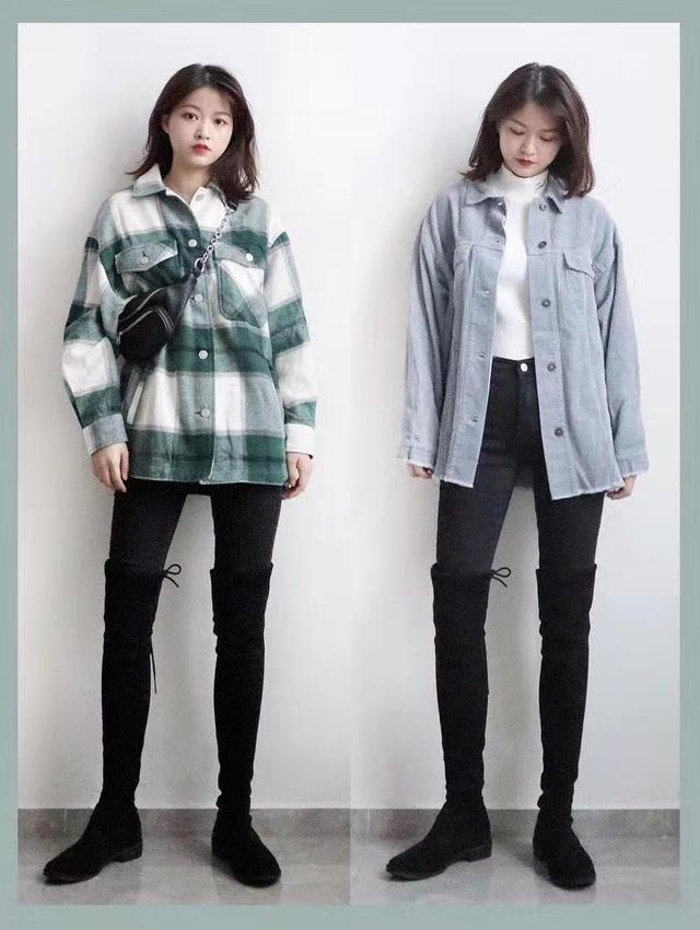 高靴筒黑色的最为百搭,搭配一条黑色的紧身裤,让鞋子与裤子有效自然的融为一体。视觉上有拉长腿部线条的效果。上衣可以选择浅色或亮色的衬衫来搭配,保暖的同时又能穿出身材轻盈感。